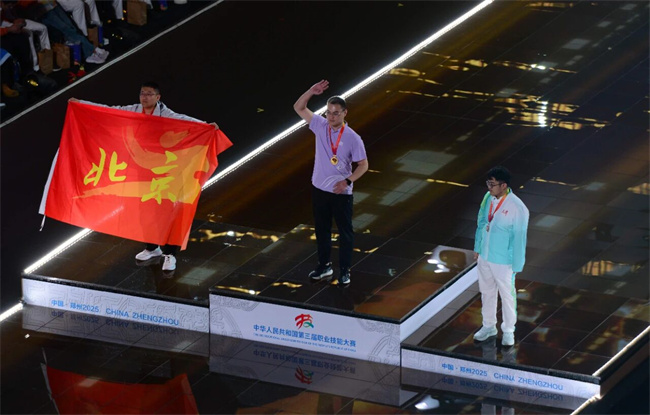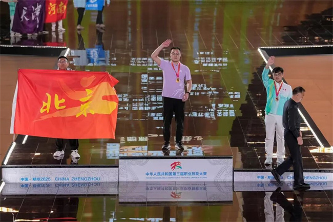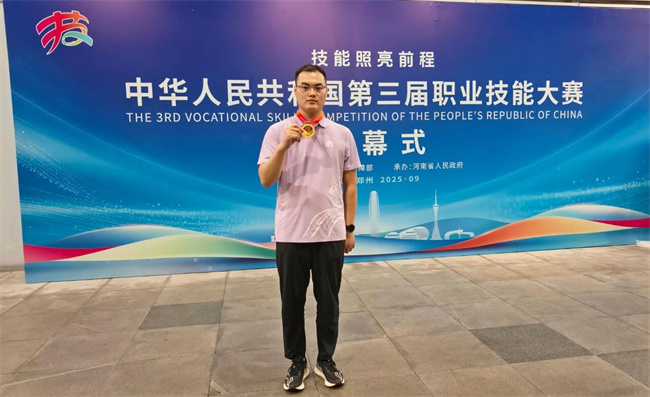 他的双手曾终日与金属门窗为伴,如今却能精准编程控制工业机器人;他曾因“不想一眼望到头”而迷茫,此刻却在全国最高领奖台上熠熠生辉。这一刻,所有深夜的灯光、山间的彷徨、指尖的伤痕,都凝聚成了胸前金牌那沉甸甸的重量。新乡职业技术学院选手张国佗,用不懈奋斗完成了从工匠到金牌选手的蜕变,成为无数职校学子心中的“灯塔”。